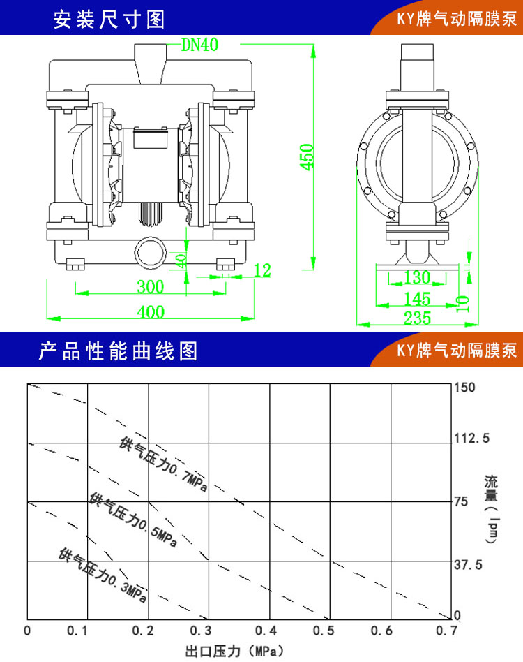 8、K型氣動雙隔膜泵揚程、流量可通過氣閥開度實現無級調節(氣壓調節在2-7bar之間)