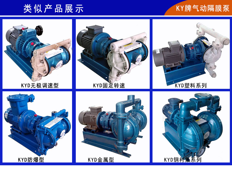 DBY電動隔膜泵是上海楷陽泵業早期開發的隔膜泵產品,本產品已于2016年1月升級為KYD電動隔膜泵。KY代表上海楷陽泵業制造有限公司的隔膜泵品牌,D代表楷陽電動隔膜泵產品。KYD電動隔膜泵不僅比老型dby電動隔膜泵流量大,更重要的是內部結構和馬達配置都有升級換代;也有客戶叫做新一代dby電動隔膜泵。新一代dby電動隔膜泵流量大,并且可以定做流量;使用壽命長、噪音底、震動小、耐腐蝕、高配置等六大優點,是目前國內最新穎的一種泵類。上海楷陽新一代dby電動隔膜泵材質齊全,膜片、球、球座采用耐腐蝕強彈性好的特氟龍材質,對于各種腐蝕性液體,帶顆粒的液體,高粘度、易揮發、易燃、劇毒的液體,均能予以抽 光吸盡。