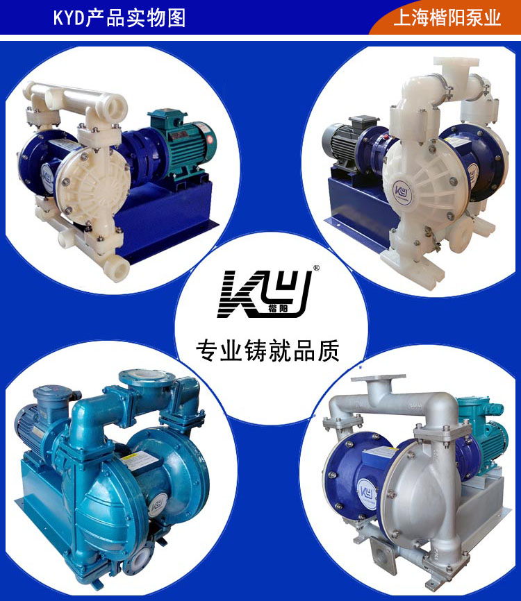 KYD氟塑料電動隔膜泵產(chǎn)品是眾多氟塑料水泵的其中一種,上海楷陽自成立以來一直以耐腐蝕隔膜泵為主要研發(fā)和生產(chǎn)對象。對于電動塑料隔膜泵的生產(chǎn)制造,上海楷陽已經(jīng)有十幾年的經(jīng)驗,累計生產(chǎn)耐腐蝕隔膜泵電動已經(jīng)有近百萬臺。選擇楷陽電動塑料隔膜泵,讓您免除設(shè)備維修的煩惱。電動氟塑料隔膜泵是耐腐蝕性能非常強的水泵,過流部分泵體選用優(yōu)質(zhì)聚偏氟乙烯材料,PVDF的化學(xué)穩(wěn)定性良好,具有優(yōu)良的耐化學(xué)腐蝕性和良好的耐熱穩(wěn)定性。可適用于除熔融態(tài)堿鹽以外的任何強酸、強堿及各類有機溶劑,應(yīng)用范圍極其廣泛。
