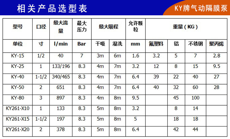11)楷陽KY牌氣動隔膜泵可做多種材質泵體,具有良好的抗腐蝕性,適用于各種介質