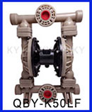 氟塑料氣動隔膜泵是耐腐蝕性能非常強(qiáng)的水泵,外殼采用耐腐性較強(qiáng)的PVDF材質(zhì)。可適用于除熔融態(tài)堿鹽以外的任何強(qiáng)酸、強(qiáng)堿及各類有機(jī)溶劑,應(yīng)用范圍極其廣泛。KY50LF大流量氣動隔膜泵對于各種腐蝕性液體、帶顆粒、高粘度、易揮發(fā)、易燃、易爆、劇毒的液體、陶瓷釉漿、果漿、膠水、油輪倉底油回收、臨時倒罐等液體均能予以抽光吸盡;尤其可以解決葉片式泵的跑、冒、滴、漏及不允許空轉(zhuǎn)等問題,是目前國內(nèi)最新穎的一種采用壓縮空氣為動力源,通過氣閥往復(fù)運(yùn)動分配空氣,帶動隔膜擠壓輸送介質(zhì)的容積式水泵,KY-50LF氣動隔膜泵集雜質(zhì)泵、自吸泵、泥漿泵、屏蔽泵、潛水泵等輸送機(jī)械的優(yōu)點于一體。