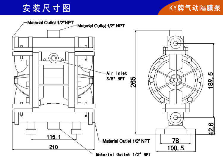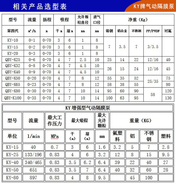 2、KY-15SS聚丙烯PP氣動隔膜泵配氣裝置內置,做到了真正的不卡氣、無死機,外觀更加美觀大方;空氣利用率大大提高,自吸功能和流量揚程都有很大改善。
