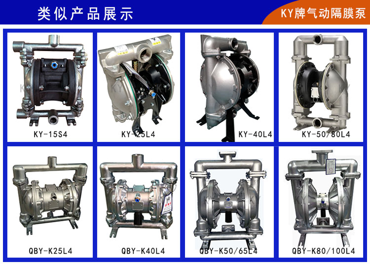 2)、KY型氣動隔膜泵整體構(gòu)造上更加優(yōu)化,泵腔和主管路都有明顯加強,自吸功能和流量揚程都有很大改善(最大流量53立方/小時,最大揚程83米);被客戶成為超大流量氣動隔膜泵和壓濾機專用氣動隔膜泵。