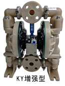 KY增強型鋁合金氣動隔膜泵,是上海楷陽泵業不斷改進氣動隔膜泵馬達體結構裝置,研發成功的新型高效氣動隔膜泵。KY增強型氣動隔膜泵的中間體和隔排為一體式;助動軸和助動滑塊也改為一體式生產,大大提高了空氣利用效率,避免了因氣壓不穩定而產生的死機、停機;真正做到了無死機,效率高、吸力強勁等特點并和自動化機械設備做到無縫連接。廣泛應用于制藥、污水處理、食品、化工、汽車、涂料等行業。KY增強型水泵的材質有鑄鐵、鋁合金氣動隔膜泵、不銹鋼304、不銹鋼316L、氟塑料PVDF、聚丙烯等,隔膜片選用山道橡膠和特氟龍材質。