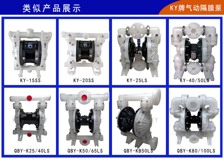 第四代QBY4型工程塑料氣動隔膜泵由于他以空氣為動力,也就注定了他無與倫比的安全性能和安靜性能。只要有氣源,把氣管查到KY-10SS工程塑料氣動隔膜泵的進氣閥,它就可以工作。不用擔心因為電線、發動機而發生危險,在易燃、易爆的環境中運行不用采取任何防護措施,更不必擔心會有噪音的煩惱;由于它是一種往復泵,靠兩片隔膜片來回運動抽動液體,它的簡單構造決定了它的方便性和超強的適應性。粘度在1萬厘泊以下的液體均可輸送,并且可以浸沒在介質中工作。