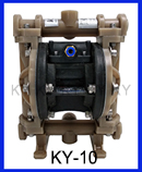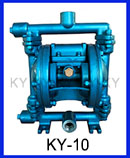 9、KY型工程塑料氣動隔膜泵整體構造上更加優化,泵腔和主管路都有明顯加強,自吸功能和流量揚程都有很大改善(最大流量/54立方/小時,最大揚程80米);被客戶成為超大流量氣動隔膜泵和壓濾機專用氣動隔膜泵。
