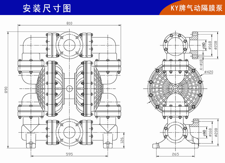 3)、QBY-K氣動隔膜泵最大的特點是供氣壓力在0.2Mpa以上就可以正常啟動(老型QBY型氣動隔膜泵供氣壓力需要0.5Mpa以上才可以正常運轉),不用再為氣動設備多導致氣壓不足而停機。