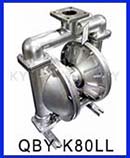 QBY-K80LZ新型鑄鋼氣動雙隔膜泵原理是以壓縮空氣為動力,當壓縮氣體進入配氣閥,配氣閥會將壓縮氣體壓入氣動泵其中一腔從而推動隔膜片運動擠壓液體流出,然而泵的另一腔泵因為被拉出而吸入液體。當隔膜片到達終點,配氣閥機構自動將壓縮空氣引入泵腔另一端,推動隔膜片朝相反方向運動,從而使兩個兩個隔膜片在新型QBY-K氣動雙隔膜泵的兩個腔做往復運動抽動液體流動。